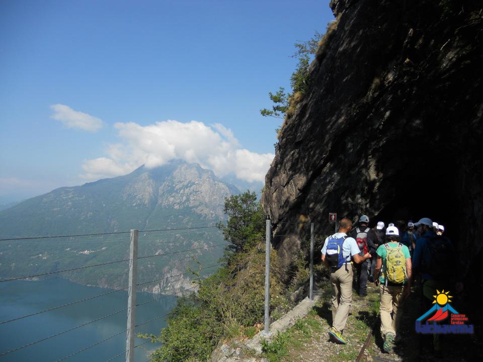 Partendo dall’Hotel Saligari, si inizia con una leggera salita per poi svoltare a destra in direzione del Sentiero Storico dei Cavalli. Dopo una breve discesa di circa 50 metri, sulla sinistra si imbocca la Strada dei Cavalli, ben segnalata e dal fondo agevole. Il sentiero si sviluppa in quota, regalando una vista mozzafiato sul paese di Verceia e sul Lago di Mezzola.