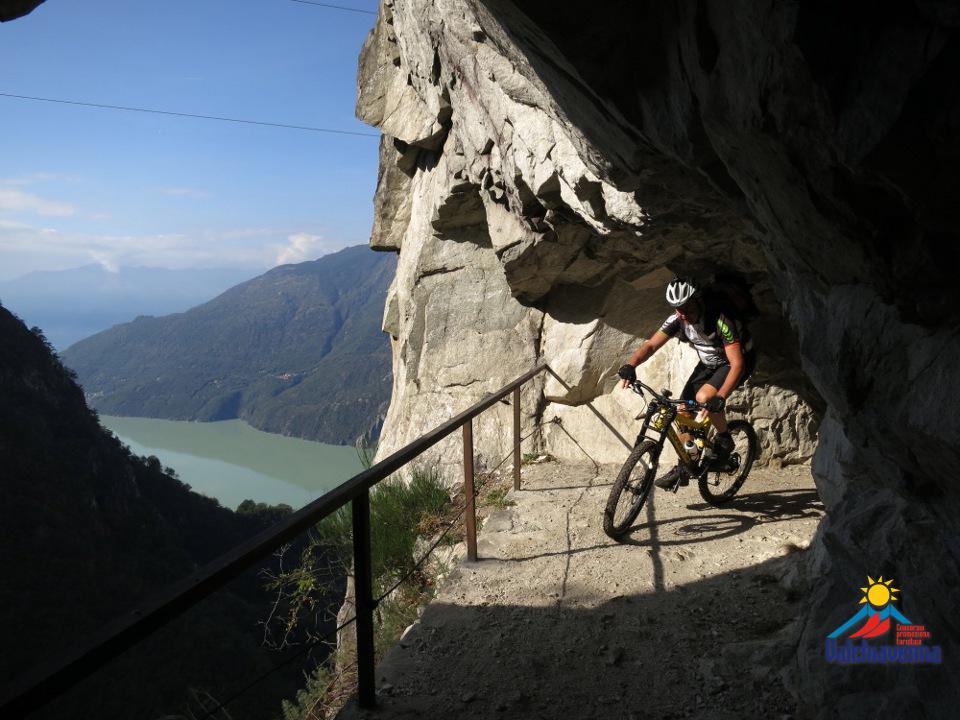 Se siete alla ricerca di itinerari più avventurosi, la Valchiavenna e la Valle Spluga offrono percorsi che sapranno mettere alla prova anche i ciclisti più esperti. La pista ciclabile della Valchiavenna conduce fino al confine svizzero, a Villa di Chiavenna, passando per luoghi di straordinaria bellezza come le Cascate dell’Acquafraggia, che hanno incantato persino Leonardo da Vinci. Per chi desidera un’esperienza più adrenalinica, la Valle Spluga è il paradiso ideale: qui troverete percorsi di montagna adatti sia agli appassionati di mountain bike che a chi vuole affrontare sfide più tecniche tra panorami spettacolari.