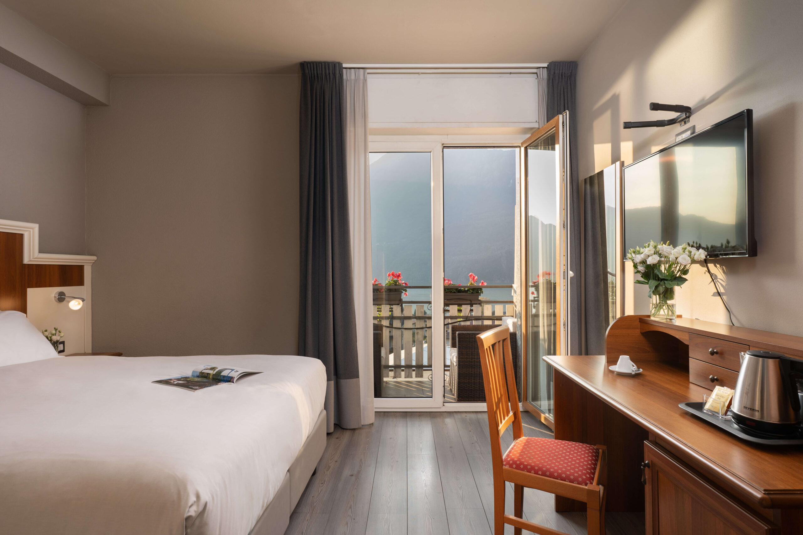 Ogni mattina ti aspetta una colazione a buffet ricca e curata, con proposte dolci e salate perfette per iniziare la giornata con energia. La posizione dell’hotel è ideale per esplorare i dintorni tra passeggiate panoramiche, trekking vista lago e percorsi in mountain bike. Per chi desidera muoversi in modo ancora più comodo e sostenibile, sono disponibili anche biciclette elettriche.